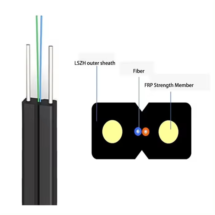 De GJYXCH FTTH Drop Cable is ontworpen voor binnenvezel-tot-het-thuis (FTTH) toepassingen.Twee parallelle metalen sterkte leden (stalen draden) zijn aan weerszijden voor de structurele integriteitDe buitenmantel is gemaakt van Low Smoke Zero Halogen (LSZH) materiaal, verkrijgbaar in zwart of op maat gemaakte kleuren.